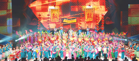 大型文藝晚會(huì)《風(fēng)起淮河》以“舞紅花鼓燈,建設(shè)新蚌埠”為主題,由“風(fēng)生水起花鼓紅”、“淮水風(fēng)情”、“華夏溢彩”、“五洲競(jìng)放”、“好一個(gè)花鼓燈”等五個(gè)篇章組成,節(jié)目具有蚌埠獨(dú)特的標(biāo)識(shí)感,充分體現(xiàn)了“唱傳淮河文脈,解讀蚌埠新韻”的內(nèi)涵,全面展示了淮河風(fēng)情、民族特色、蚌埠情懷和時(shí)尚潮流。