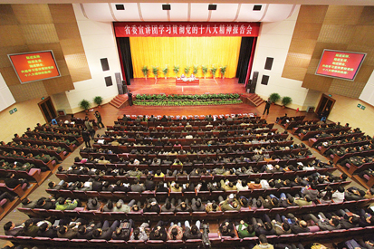 就深入學習宣傳貫徹黨的十八大精神,周春雨強調(diào),要在深刻理解、把握精髓上下功夫。各級各部門和廣大干部群眾要按照中央提出的“七個深刻領(lǐng)會”的要求,堅持不懈地學深學透,把握實質(zhì),融會貫通,切實把思想和行動統(tǒng)一到十八大精神上來。要在廣泛宣傳、凝聚力量上下功夫。要以領(lǐng)導干部為重點,精心安排好各級干部的培訓、輪訓,真正做到以十八大精神武裝頭腦、指導實踐、推動工作。各地區(qū)各部門的主要領(lǐng)導既要身體力行,帶頭學習,更要帶頭宣傳,帶頭宣講,確保集中宣講活動全覆蓋,使學習教育覆蓋到各個社會團體,各級宣傳輿論部門要精心策劃集中報道,積極營造學習貫徹十八大精神的濃厚氛圍。