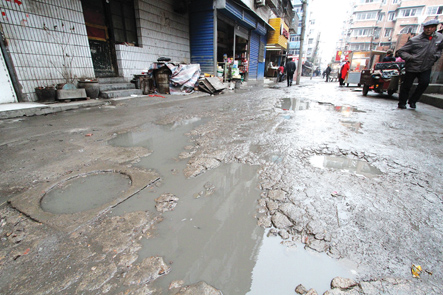 紅旗二路通向涂山路的支路(曾稱(chēng)南崗二路)路面損毀嚴(yán)重,下雨天大大小小的水坑里積滿(mǎn)污水。